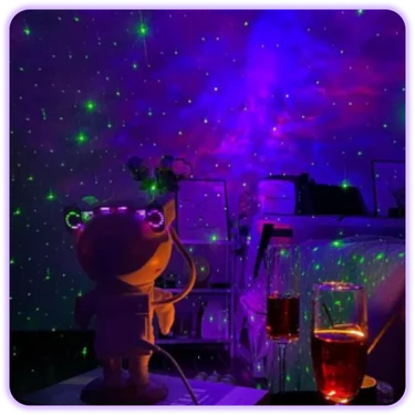 Njut av en mysig stund, omgiven av värme och en stjärnklar atmosfär. Låt Spacebuddy förvandla ditt rum till en magisk plats och göra filmkvällar med dina favoritprogram till en minnesvärd upplevelse.